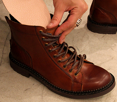 な、なんと!!後ろにはジップが付いてる優れモノ!! これだとあまりヒモをゆるめないで綺麗な形のままで履きやすくなっています。 |